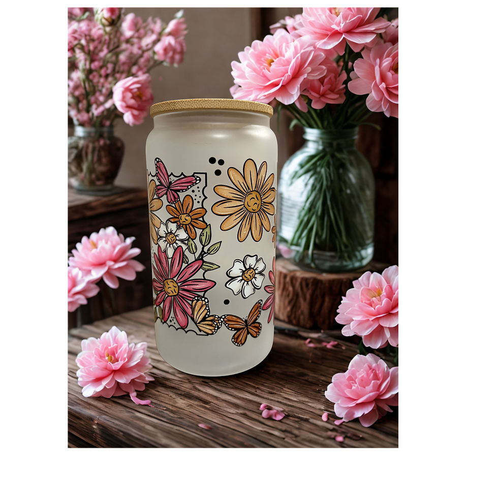 16 oz Spring Themed Glass Jar